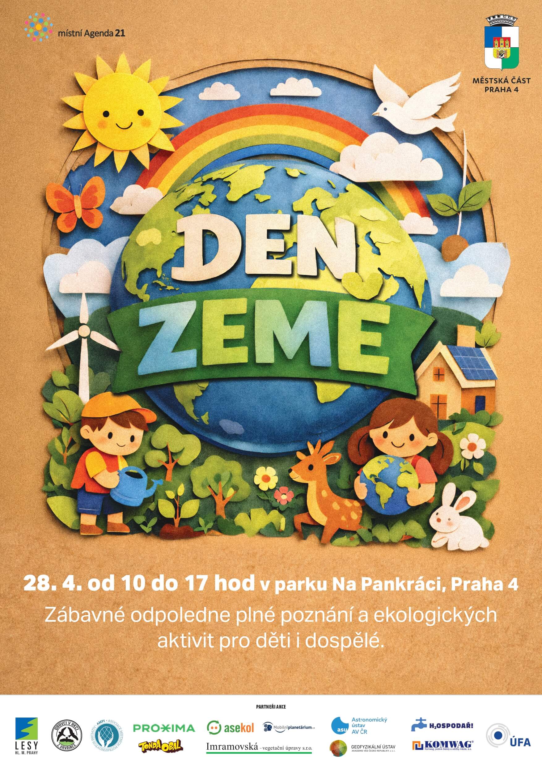 Zveme Vás na tradiční akci Den Země, která se bude konat v úterý 28. dubna 2026 od 10.00 do 17.00 hodin v Centrálním parku na Pankráci.